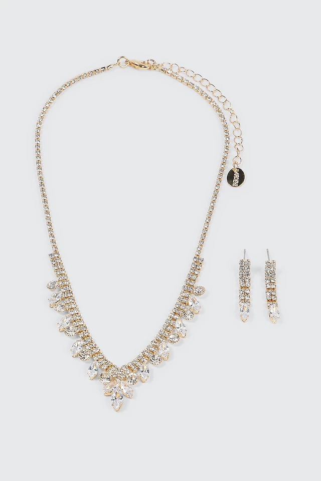 Ardene Rhinestone V Necklace & Earring Set in Gold | Stainless Steel