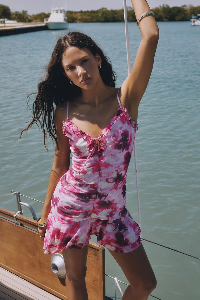 Ardene Ruched Mesh Mini Dress in Pink | Size | Polyester/Spandex
