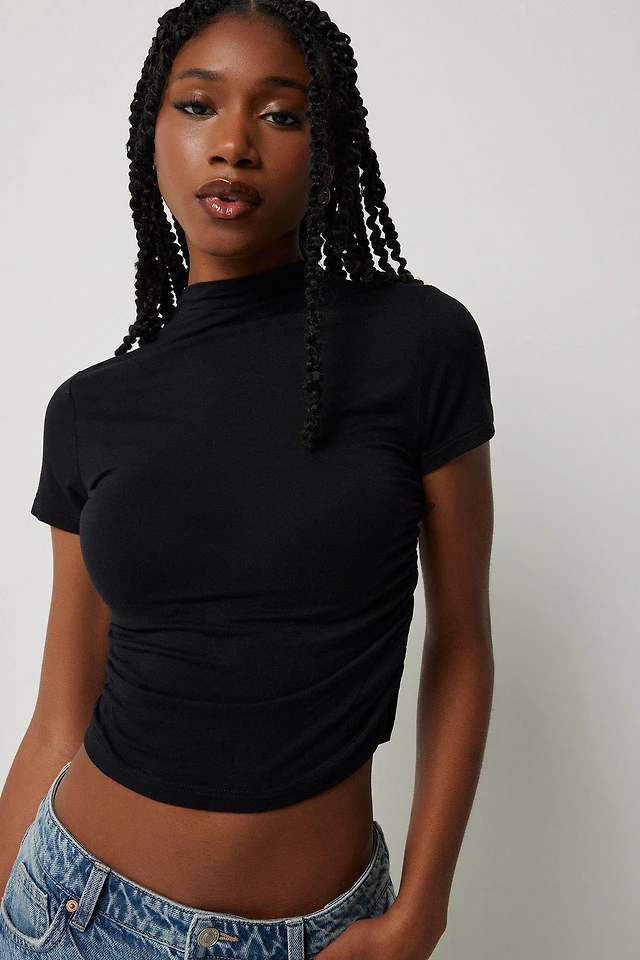 Ardene Ruched Side High Neck T-Shirt in | Size | Elastane/Viscose