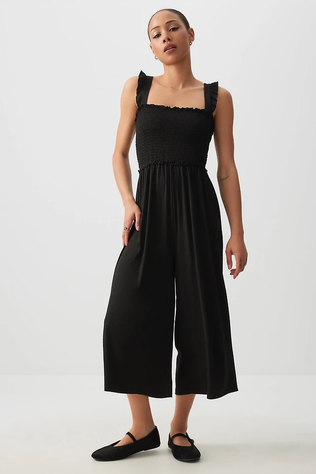 Ardene Ruffle Strap 7/8 Jumpsuit in Black | Size | Polyester/Elastane