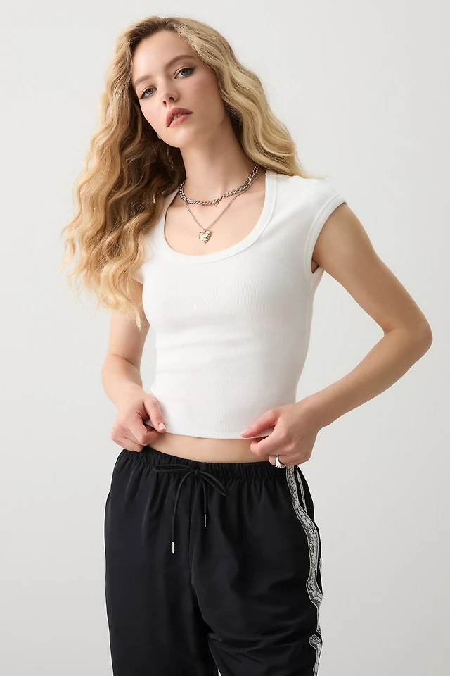 Ardene Scoop Neck Crop T-Shirt in White | Size | Cotton/Elastane