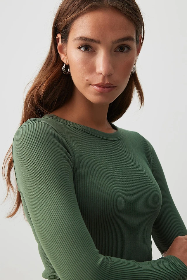 Ardene Seamless Crop Long Sleeve T-Shirt in Thyme | Size | Polyester/Nylon/Elastane | Eco-Conscious