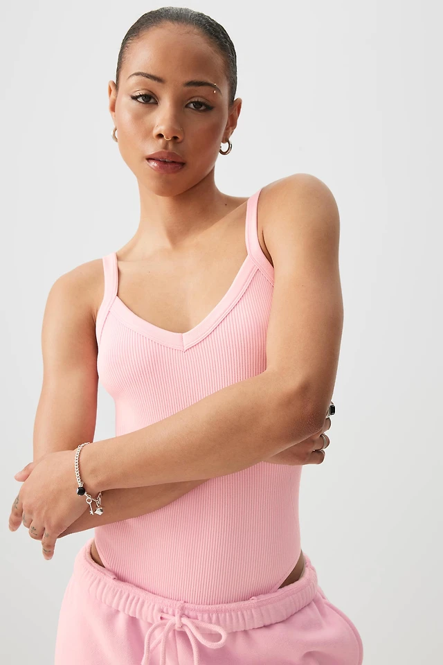 Ardene Seamless V-Neck Bodysuit in Petal Pink | Size | Polyester/Nylon/Elastane | Eco-Conscious