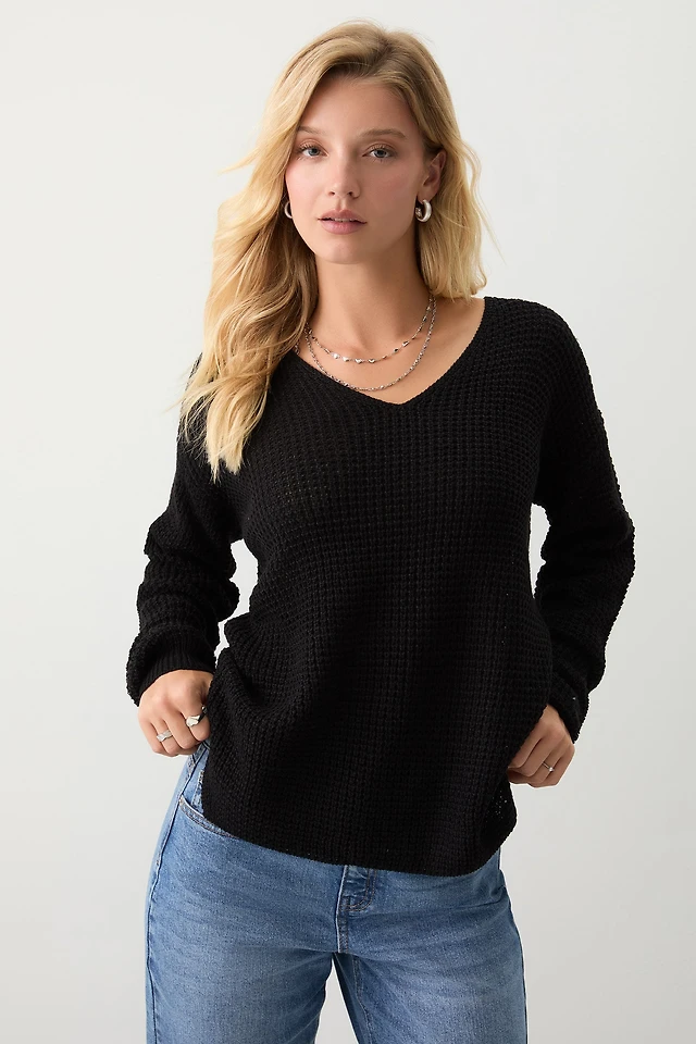 Ardene Shaker Stitch V-Neck Sweater in | Size | 100% Acrylic