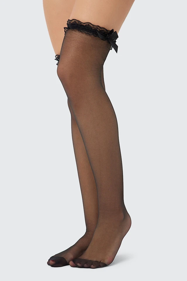 Ardene Sheer Over-the-Knee Socks with Bow in Black | Nylon/Spandex