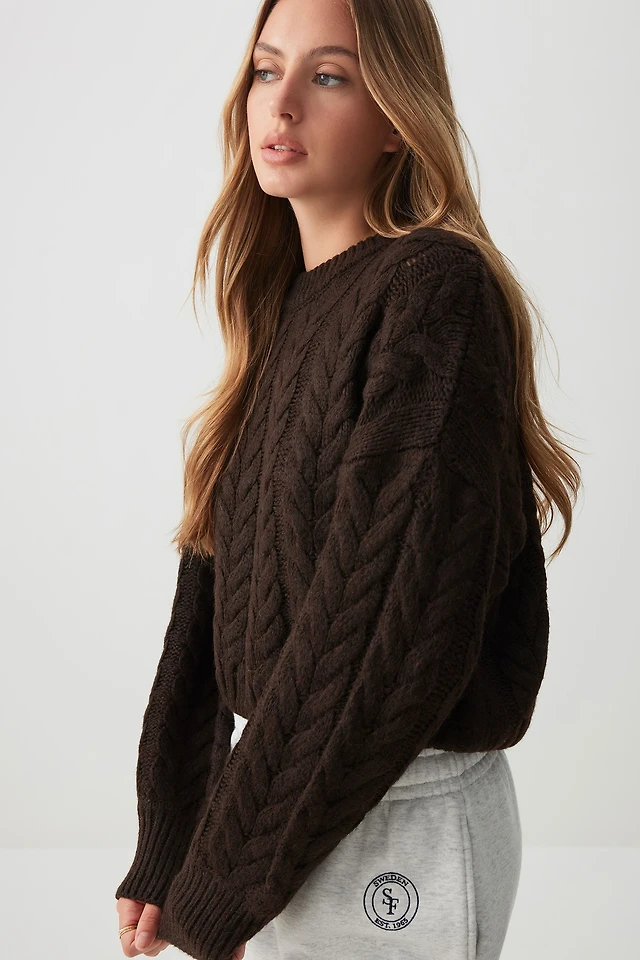 Ardene Short Cable Knit Sweater in | Size | Polyester | Eco-Conscious