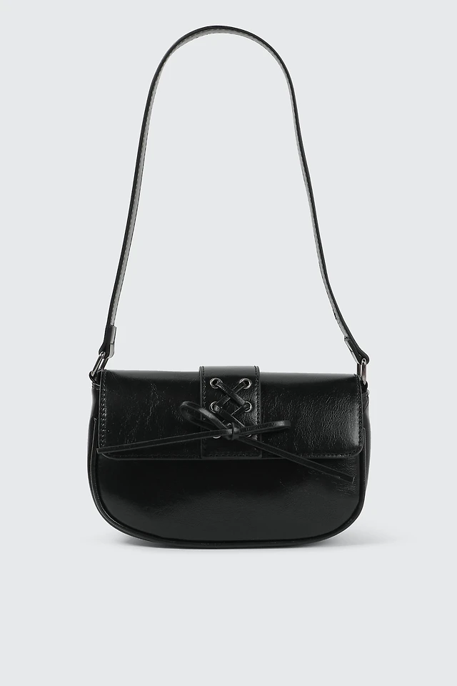 Ardene Shoulder Bag with Lace Up Detail in Black | 100% Recycled Polyester/Faux Leather | Eco-Conscious