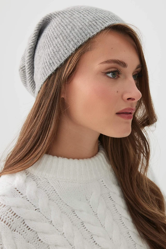 Ardene Slouchy Rib Beanie in Grey | 100% Acrylic