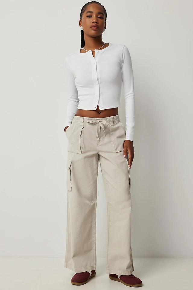Ardene Slouchy Straight Leg Cargo Pants in Beige | Size | 100% Cotton