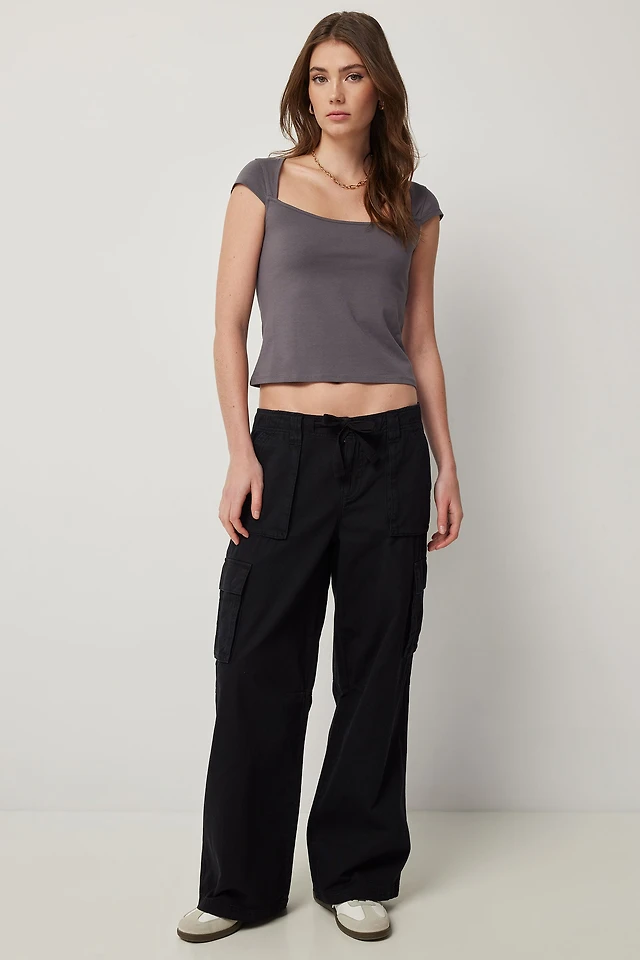 Ardene Slouchy Straight Leg Cargo Pants in Black | Size | 100% Cotton