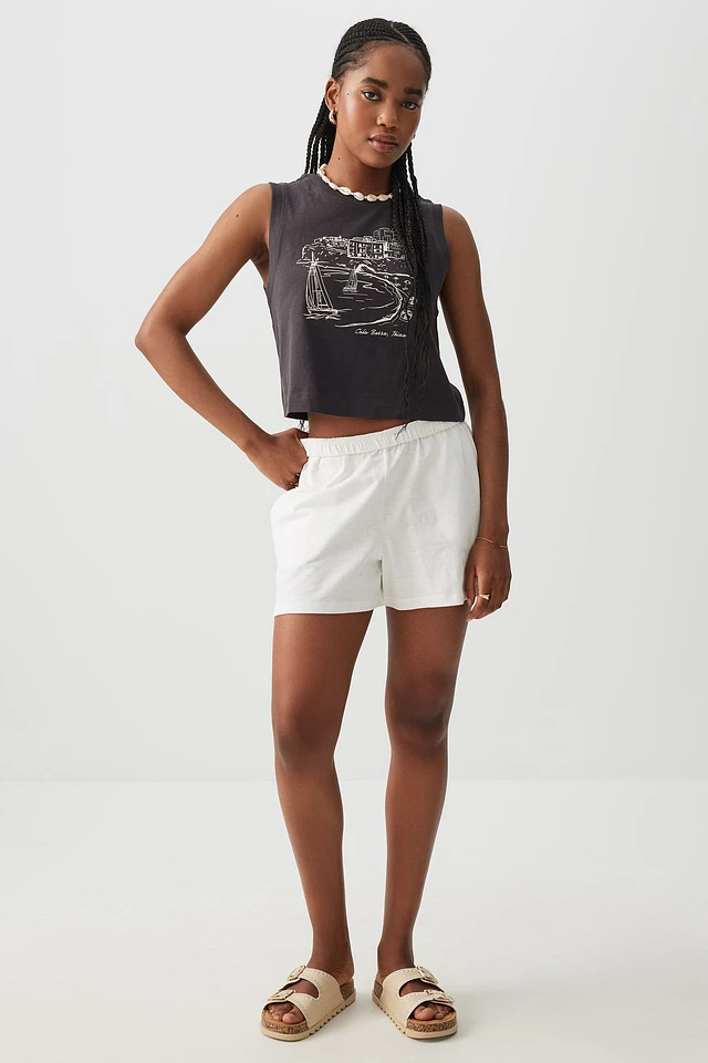 Ardene Slub Jersey Shorts in Beige | Size | Polyester/Elastane