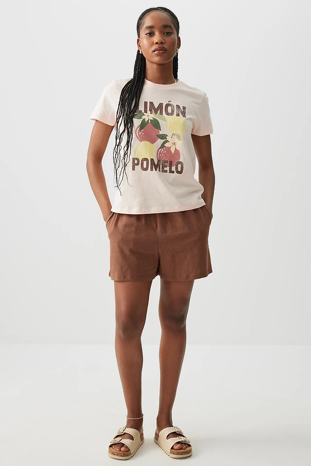 Ardene Slub Jersey Shorts in Brown | Size | Polyester/Elastane