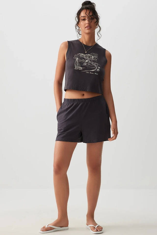 Ardene Slub Jersey Shorts in Dark Grey | Size Small | Polyester/Elastane