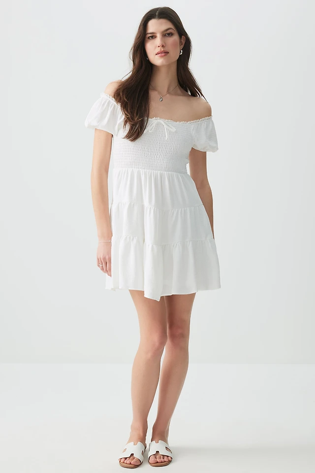 Ardene Smocked Tiered Midi Dress in White | Size Medium | Rayon