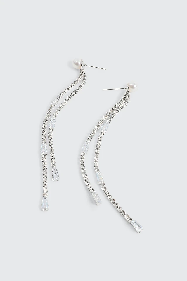 Ardene Stone & Pearl Drop Earrings in Silver | Stainless Steel