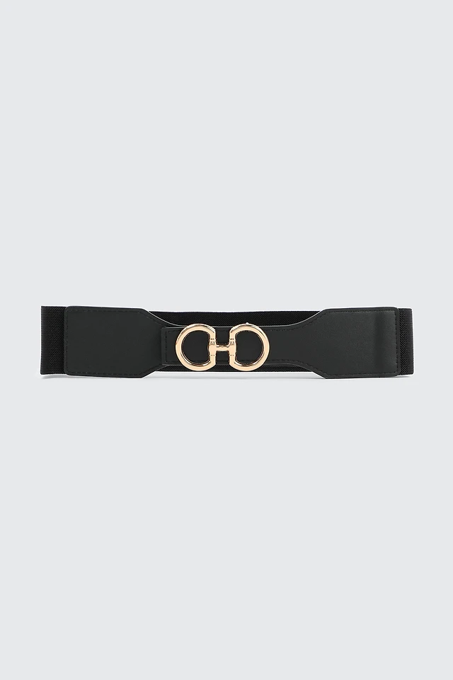 Ardene Stretch Belt with Double Half-Moon Buckle in Black | Size | Polyester