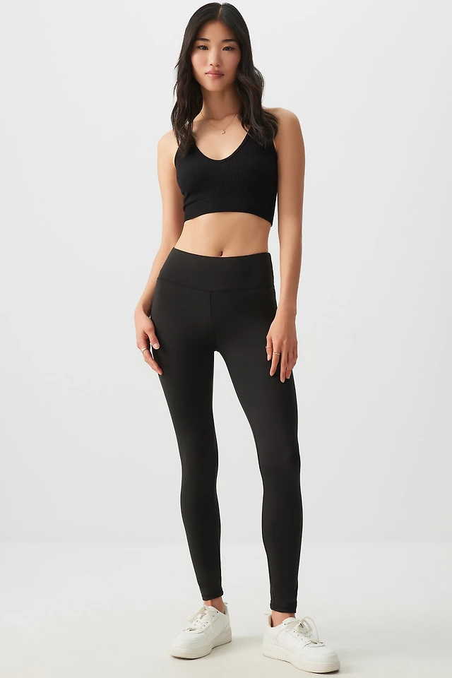 Ardene Super Soft Wide Waistband Leggings in Black | Size Medium | Polyester/Spandex | Eco-Conscious