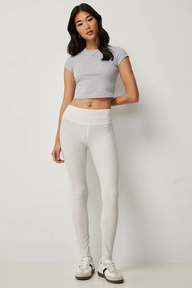 Ardene Super Soft Wide Waistband Leggings in Light Grey | Size | Polyester/Spandex | Eco-Conscious