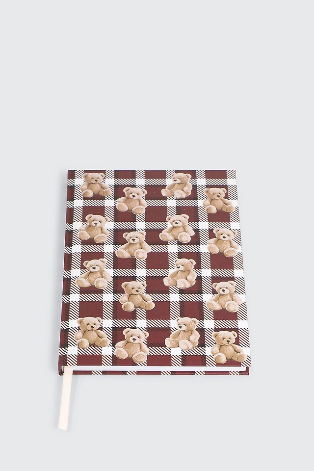 Ardene Teddy Bear Print Notebook in Burgundy