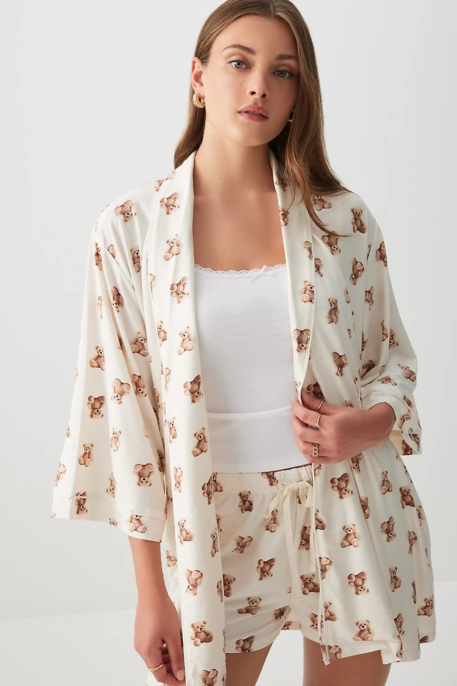 Ardene Teddy Bear Print Super Soft Robe in Beige | Size | Polyester/Spandex | Eco-Conscious