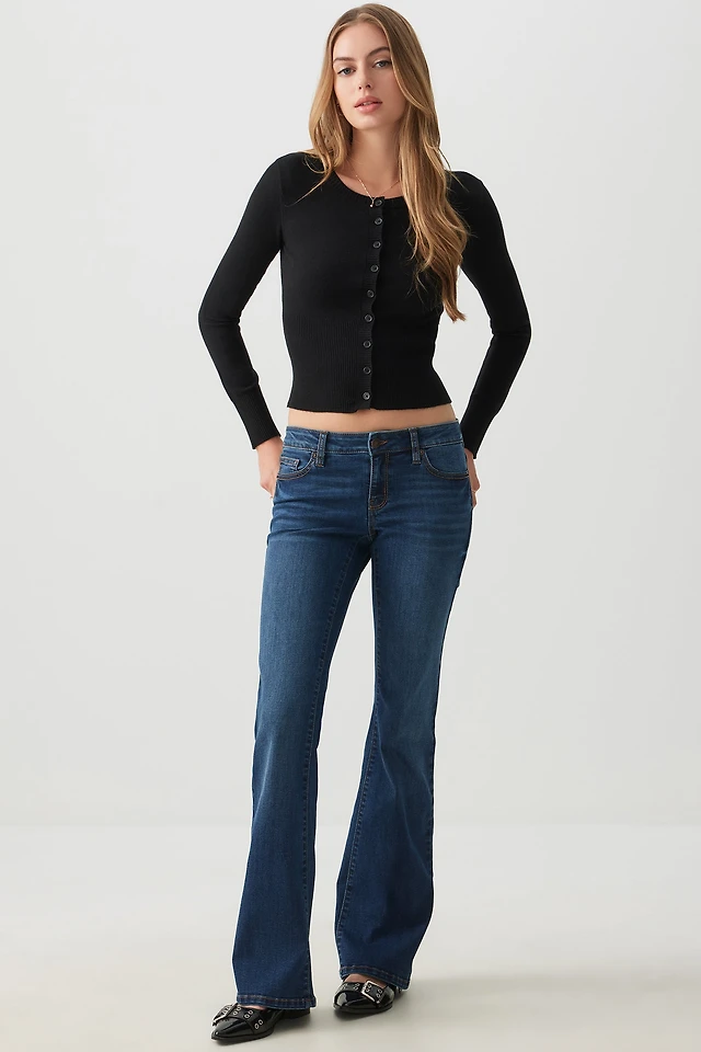 Ardene The Idol Low Rise Flare Jean in Dark Blue | Size | Polyester/Rayon/Spandex