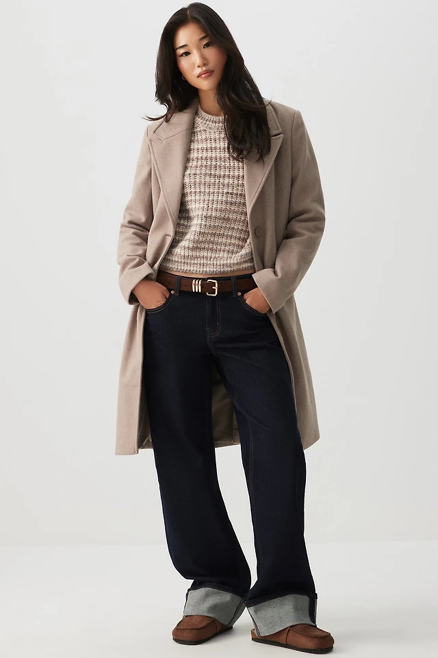 Ardene Three-Button Brushed Felt Coat in Brown | Size | Polyester