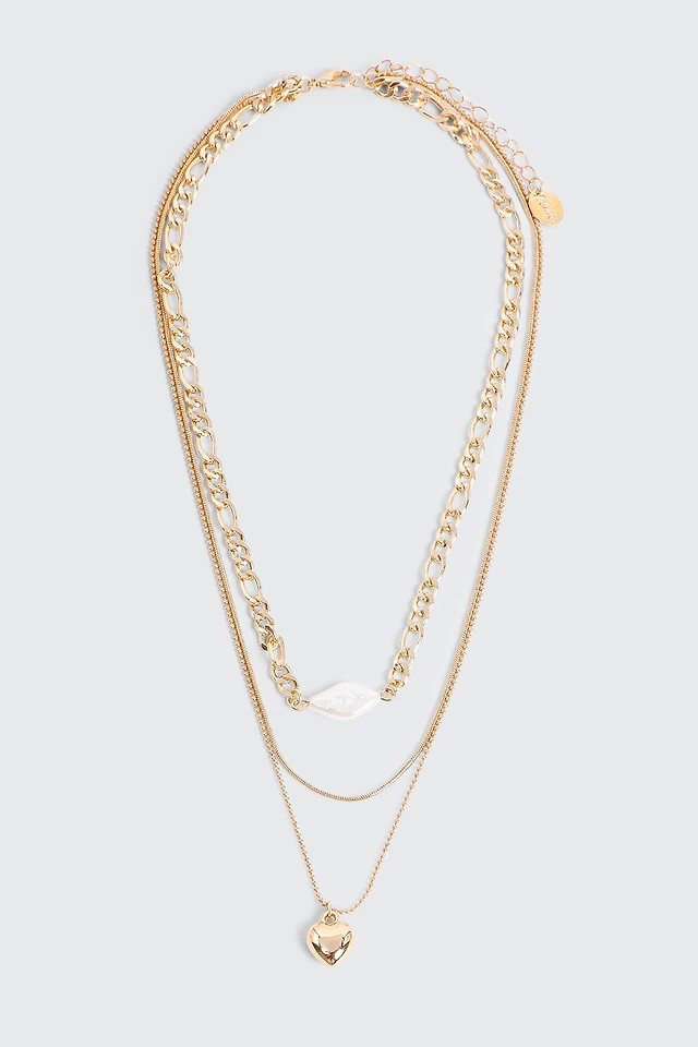 Ardene Three-Row Pearl & Heart Necklace in Gold