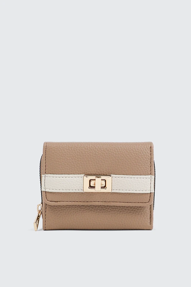 Ardene Turn Lock Wallet in Beige | Faux Leather/Polyester