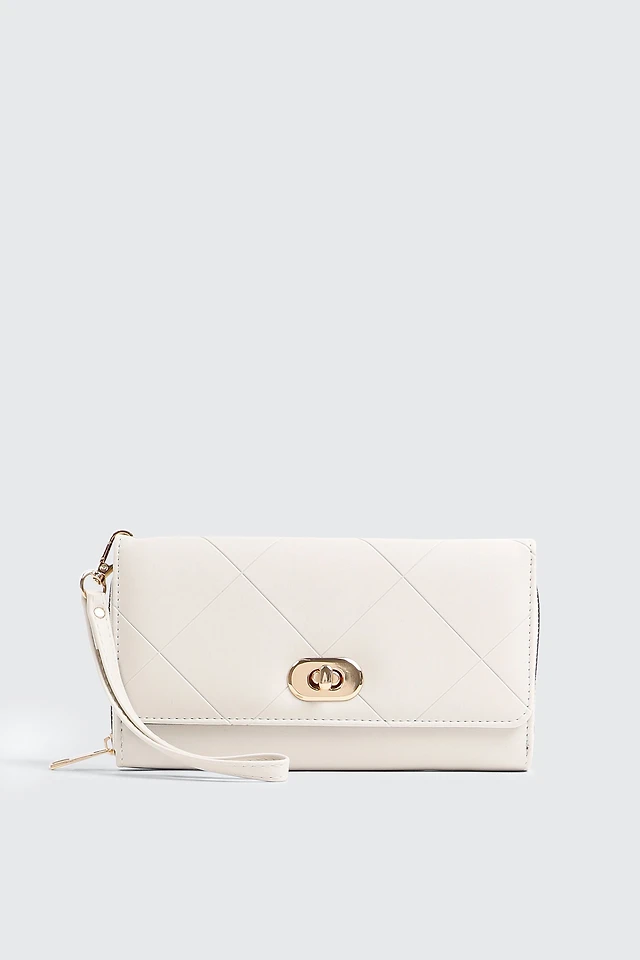 Ardene Turn Lock Wallet in Off-White | Faux Leather/Polyester