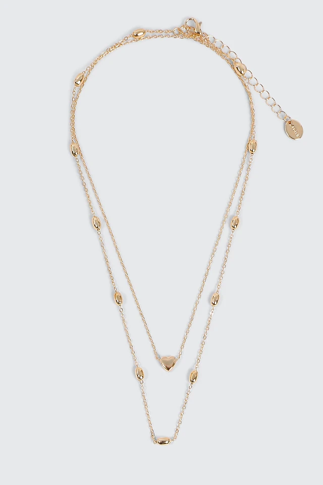 Ardene Two-Row Heart Necklace in Gold | Eco-Conscious