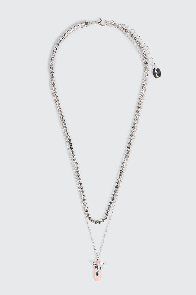 Ardene Two-Row Tennis Necklace with Ballet Slipper in Silver