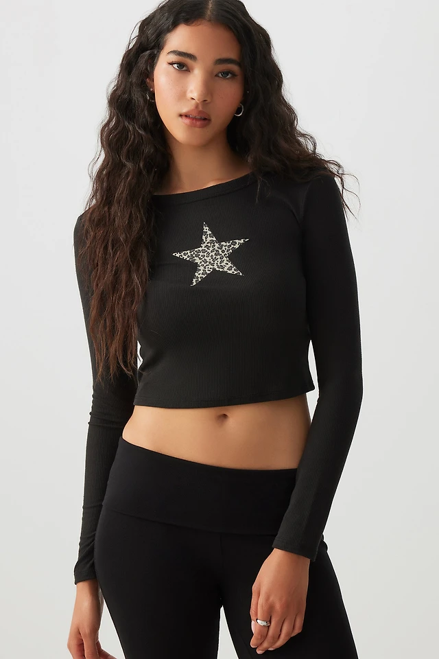 Ardene Ultra Crop Graphic Long Sleeve T-Shirt in | Size | Polyester/Elastane | Eco-Conscious