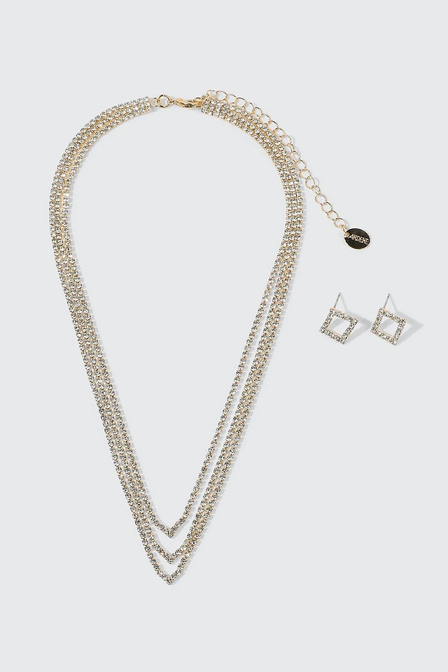 Ardene V Shape Necklace and Earrings Set in Gold | Stainless Steel
