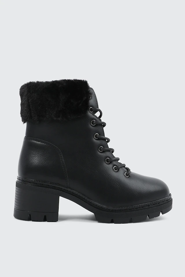 Ardene Warm Lined Boots with Faux Fur Trim in Black | Size | Faux Leather