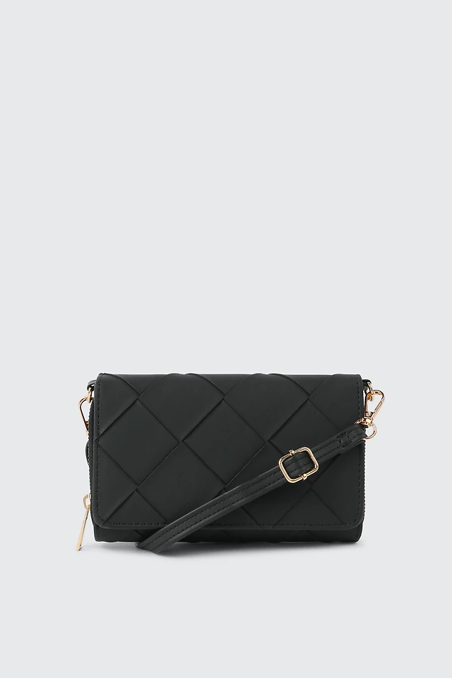 Ardene Weaved Wallet in Black | 100% Recycled Polyester/Faux Leather | Eco-Conscious