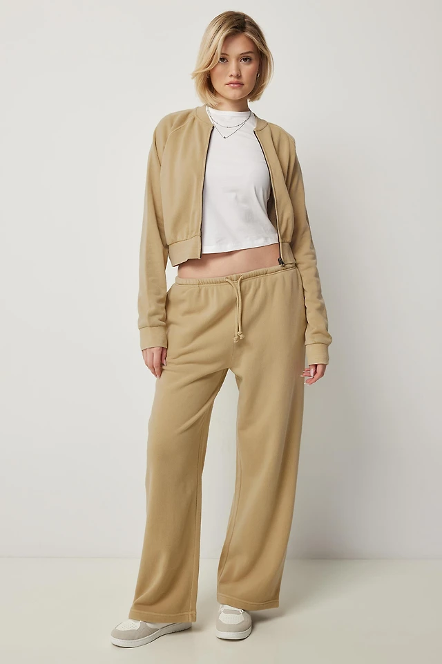 Ardene Wide Leg Sweatpant in Beige | Size | Polyester/Cotton | Fleece-Lined