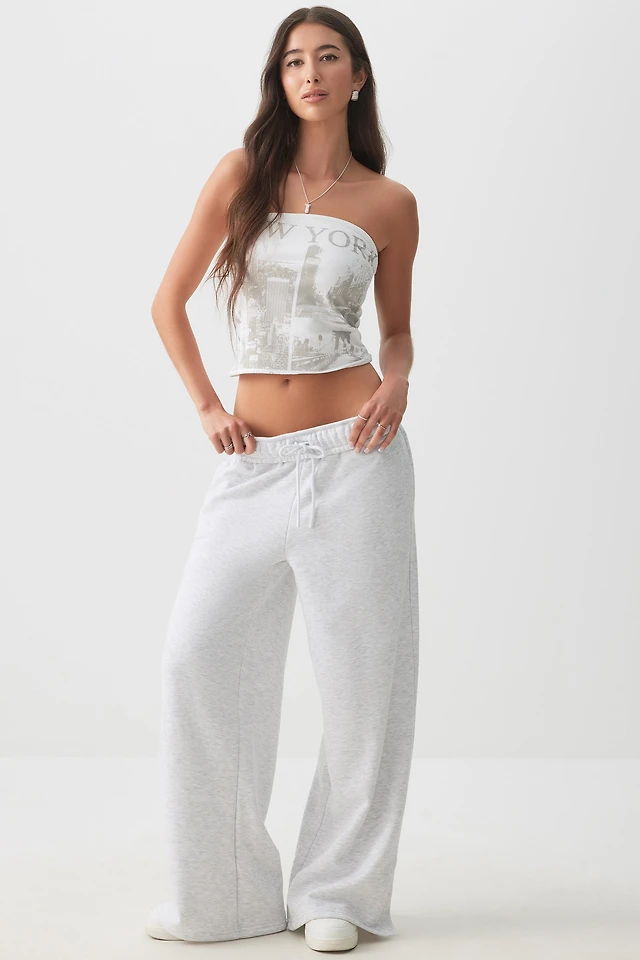 Ardene Wide Leg Sweatpants with Foldover Waistband in Light Grey | Size XL | Polyester/Cotton | Fleece-Lined