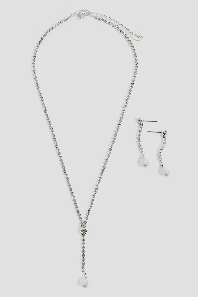 Ardene Y Shape Necklace and Earrings Set in Silver | Stainless Steel