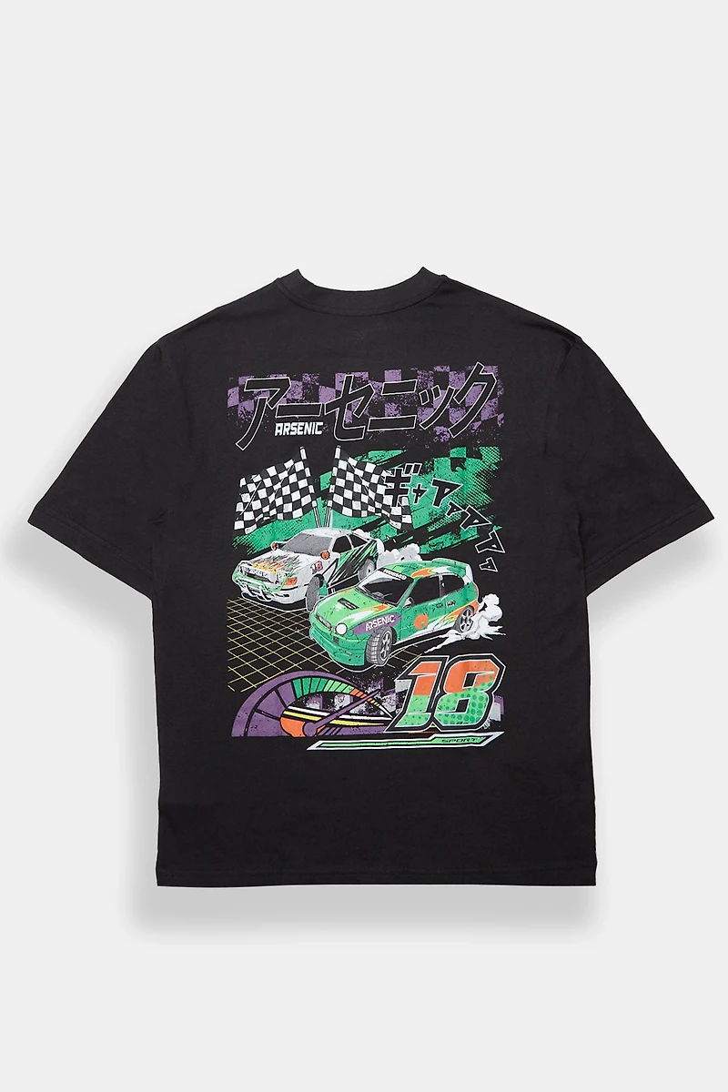 Men's t-shirtArsenic Drift Team graphics printed on the chest and backWoven brand label on the bottom hemCrew neckOversized fit60% Cotton, 40% PolyesterMachine wash inside out in cold water - Gentle with like colours - No bleach - Tumble dry low - Low iron on reverse sideImported by ArsenicStyle #1650-40912605