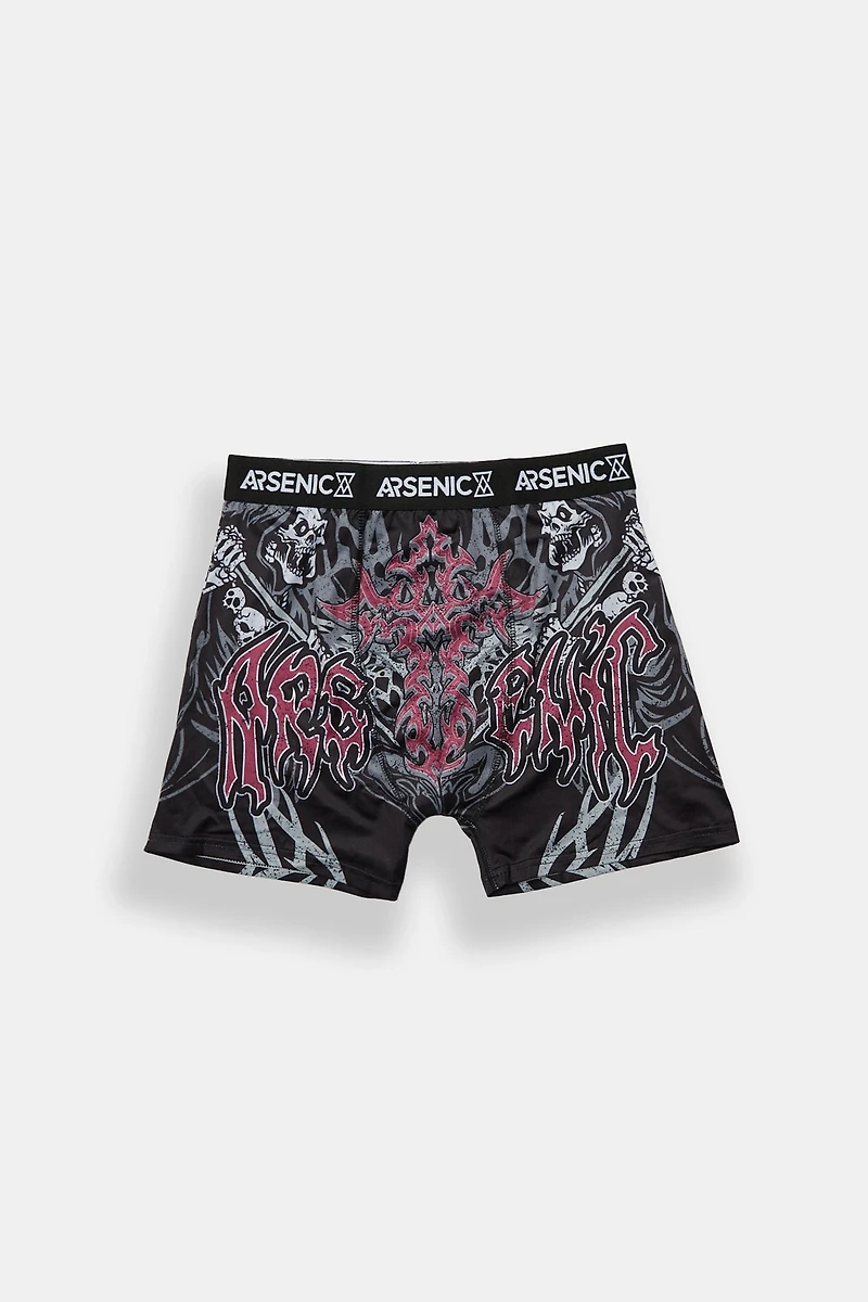 Men's boxer briefsAllover reaper cross graphic printElastic waistband with Arsenic logosLonger length90% Polyester, 10% SpandexMachine wash cold water - Gentle with like colours - No bleach - Tumble dry low - Do not ironImported by ArsenicStyle #1649-19122625