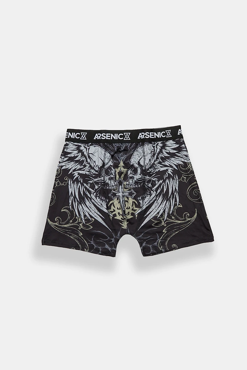 Men's boxer briefsAllover winged skulls graphic printElastic waistband with Arsenic logosLonger length90% Polyester, 10% SpandexMachine wash cold water - Gentle with like colours - No bleach - Tumble dry low - Do not ironImported by ArsenicStyle #1649-19122624