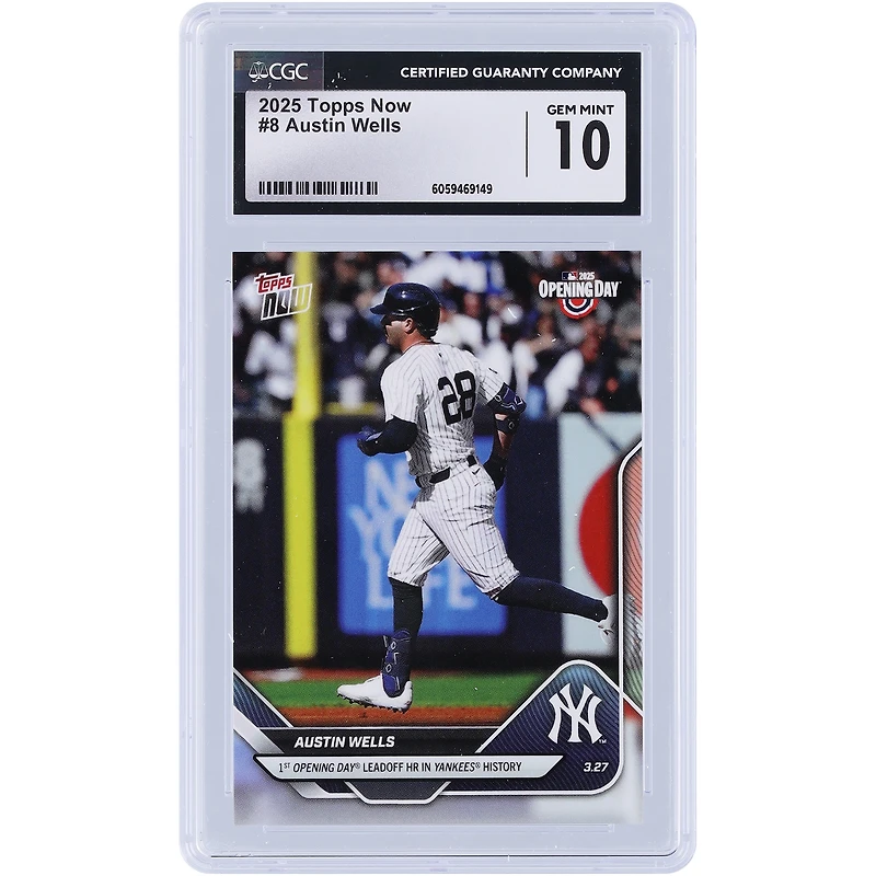 Austin Wells New York Yankees 2025 Topps maintenant le 1er coup de circuit en tête de la journée d'ouverture dans l'histoire des Yankees #8 CGC Carte 10 authentifiéeAustin Wells New York Yankees 2025 Topps maintenant le 1er coup de circuit en tête de la journée d'ouverture dans l'histoire des Yankees #8 CGC Carte 10 authentifiéeAustin Wells New York Yankees 2025 Topps maintenant le 1er coup de circuit en tête de la journée d'ouverture dans l'histoire des Yankees #8 CGC Carte 10 authentifiée