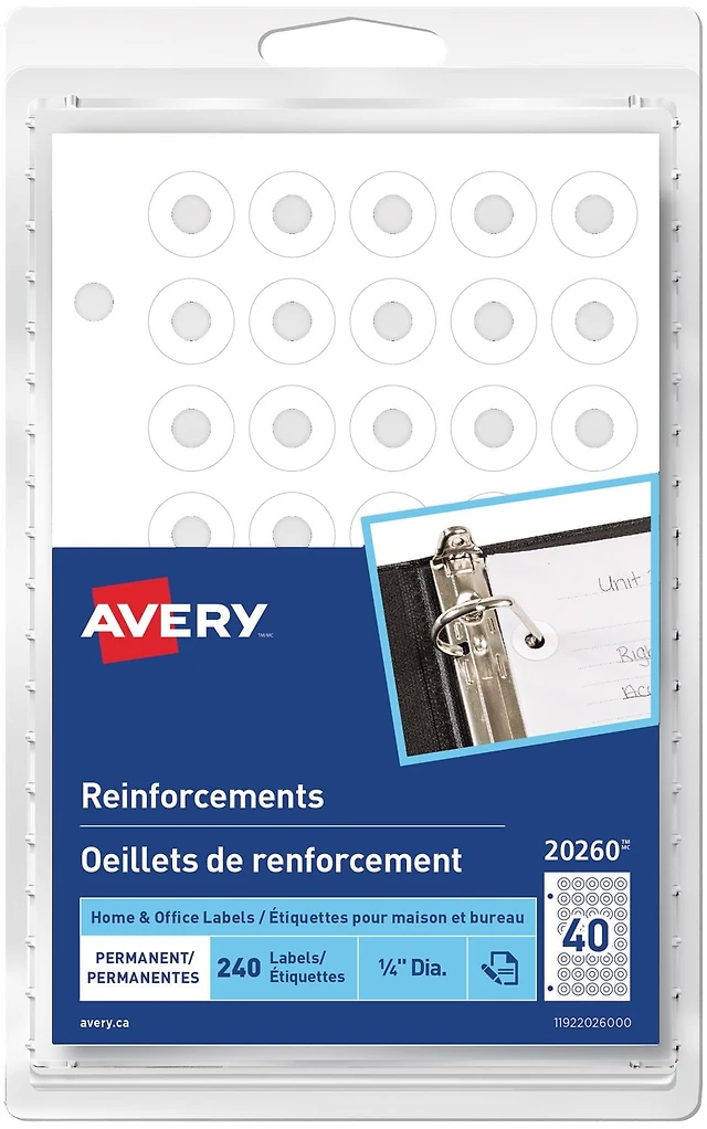 Avery White Reinforcement Labels, ¼" Diameter - 20260