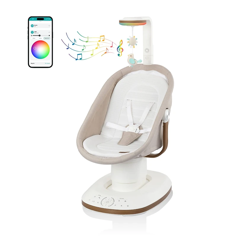 Le siège berçant à mouvement intelligent 2-en-1 Elaraᴹᶜ et siège inclinable Nestᴹᶜ apaisant d’Evenfloᴹᴰ réinvente votre maison pour bébé. Faisant partie de la collection Maison qui intègre la technologie SensorySootheᴹᶜ, ce système 2-en-1 révolutionnaire crée un environnement naturellement apaisant avec des lumières, de la musique, des sons et un jouet intégrés directement dans la barre de technologie pour éveiller ou apaiser votre petit. L’application mobile Evenflo permet de gérer toutes les fonctionnalités SensorySoothe pour offrir un confort personnalisé qui s’adapte aux besoins et préférences uniques de votre bébé. L’Elara se transforme pour répondre aux besoins changeants de votre bébé avec deux modes distincts : un siège berçant vertical à mouvement intelligent et un siège inclinable Nest apaisant, pouvant accueillir les bébés jusqu’à 9 mois (25 lb / 11,3 kg). La technologie avancée de détection des pleurs réagit en quelques secondes lorsque bébé pleure, activant les lumières et sons SensorySoothe ainsi qu’un doux mouvement de balancement pour apaiser le bébé lorsqu’il en a le plus besoin. L’expérience de votre bébé est personnalisée grâce à 10 mouvements différents, 5 vitesses réglables et une capacité de rotation de 90° qui vous permet d’ajuster la position assise et les mouvements de balancement pour une interaction optimale et apaisante. Le concept sophistiqué comprend des tissus respirants lavables en machine faits de maille aérée de qualité supérieure, ainsi que d’élégants accents semblables au bois qui créent une esthétique élégante se fondant parfaitement dans votre décoration intérieure. Ce système offre la combinaison parfaite de technologie de pointe, de soins réactifs et de style sophistiqué qui permet de transformer la manière dont on apaise son bébé. Le siège berçant à mouvement intelligent Elara et le siège inclinable Nest apaisant rendent la parentalité plus facile et intuitive dès le début. Les familles font confiance à Evenflo depuis plus de 100 ans pour de l’équipement intelligent et innovant conçu pour rendre la vie plus facile, plus sûre et plus confortable à la maison et en déplacement. Avec le temps et la tranquillité d’esprit dont vous avez besoin, vous pouvez vous concentrer sur ce qui compte le plus : votre enfant.