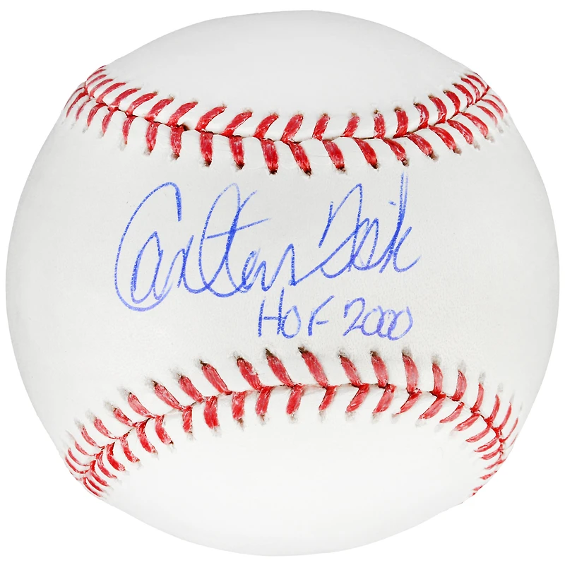 Cette balle de baseball Rawlings a été signée à la main par le receveur du Temple de la renommée Carlton Fisk avec l'inscription « HOF 2000 ». Elle a été obtenue sous les auspices du programme d'authentification de la MLB et peut être vérifiée par son hologramme numéroté sur MLB.com. Elle est également accompagnée d'un hologramme inviolable numéroté individuellement de Fanatics Authentic. Pour garantir l'authenticité, l'hologramme peut être examiné en ligne. Ce processus permet de garantir que le produit acheté est authentique et élimine toute possibilité de duplication ou de fraude.