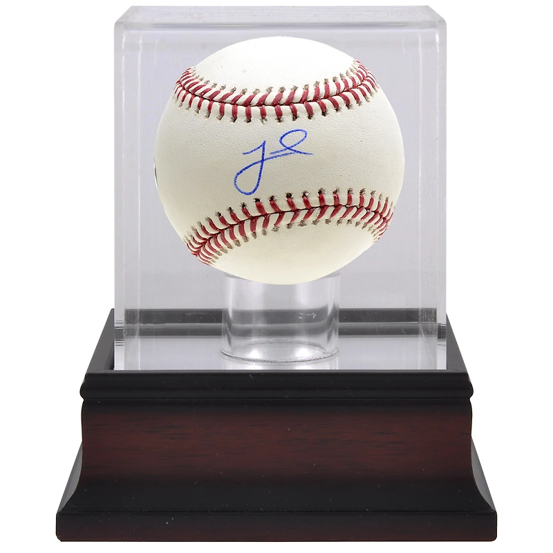 Balle de baseball autographiée par Jeff McNeil des New York Mets et vitrine de présentation de balles de baseball en acajou