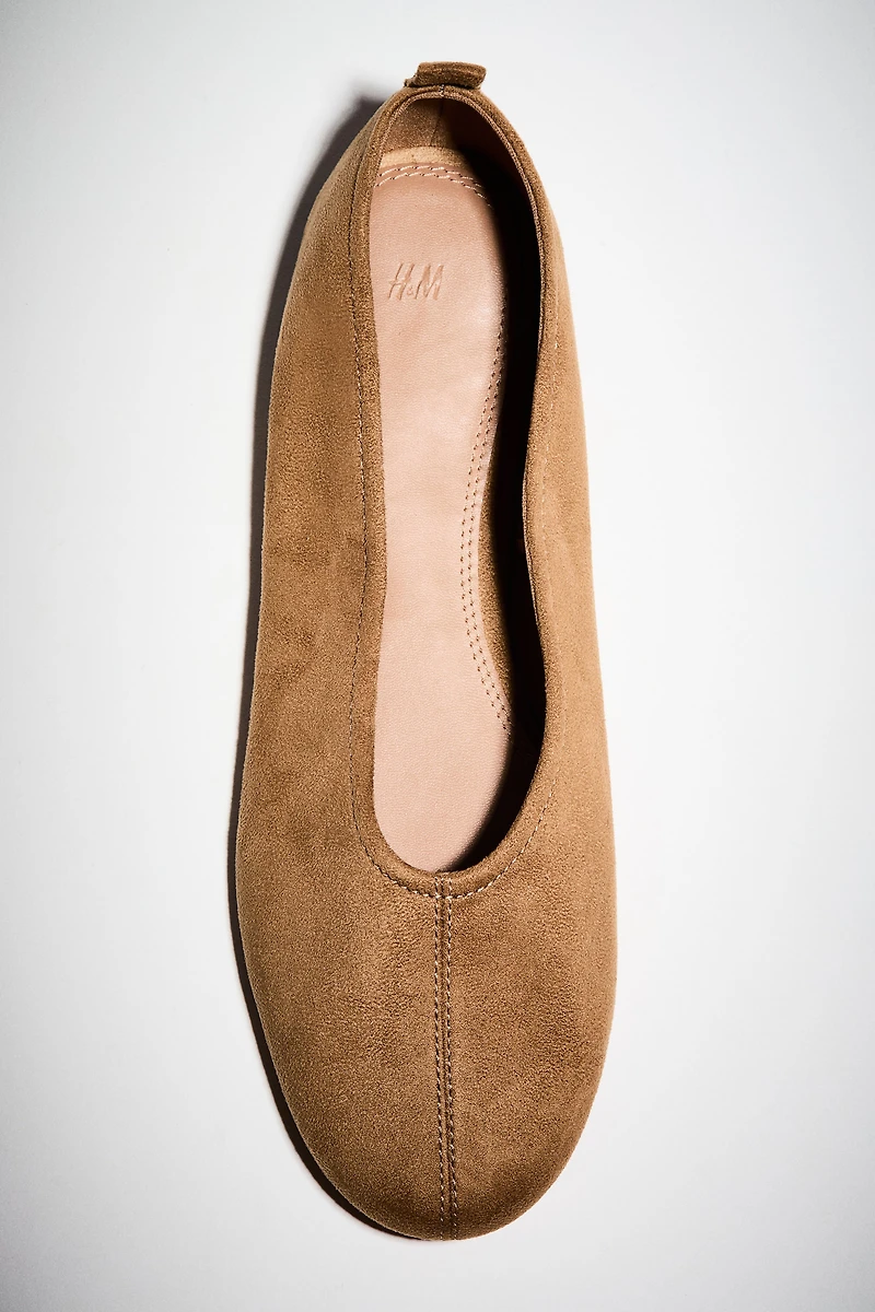 Ballerines à la douce finition grattée. Modèle à bout rond avec couture apparente devant et boucle sur l'arrière. Doublure en jersey.