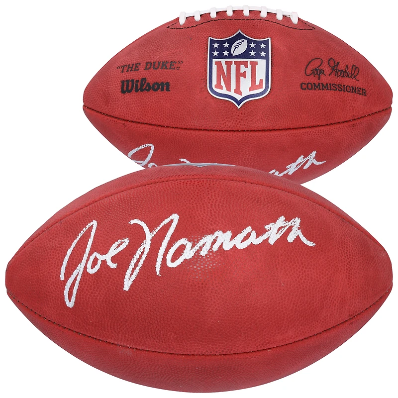 Ballon de football Wilson Duke en couleur autographié par Joe Namath, New York Jets