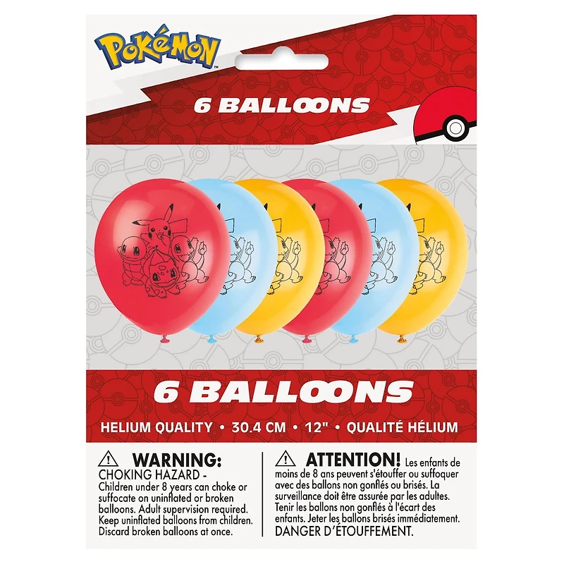 Ballons en latex Pokémon, 12 po, 6 ct Mesure 12" une fois gonflé
