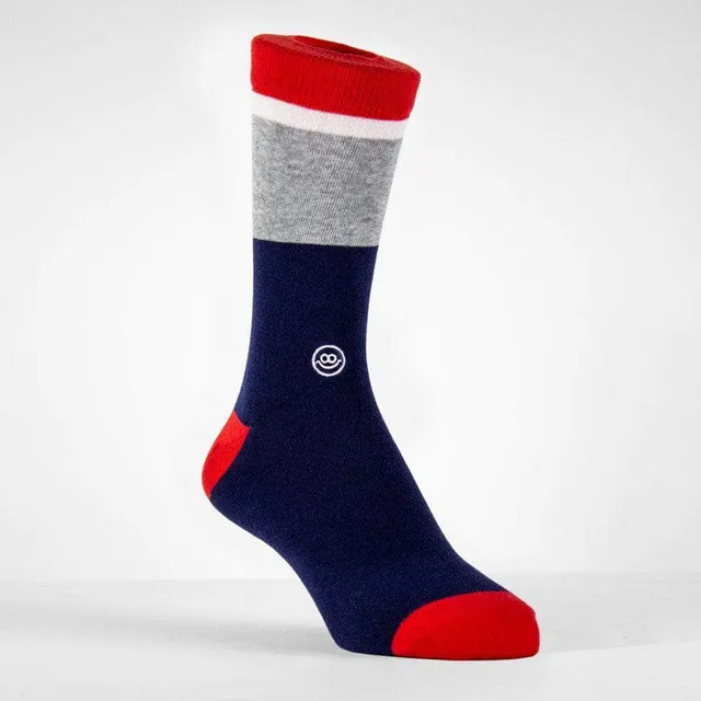 Bas - Marine ligné gris, blanc et rouge